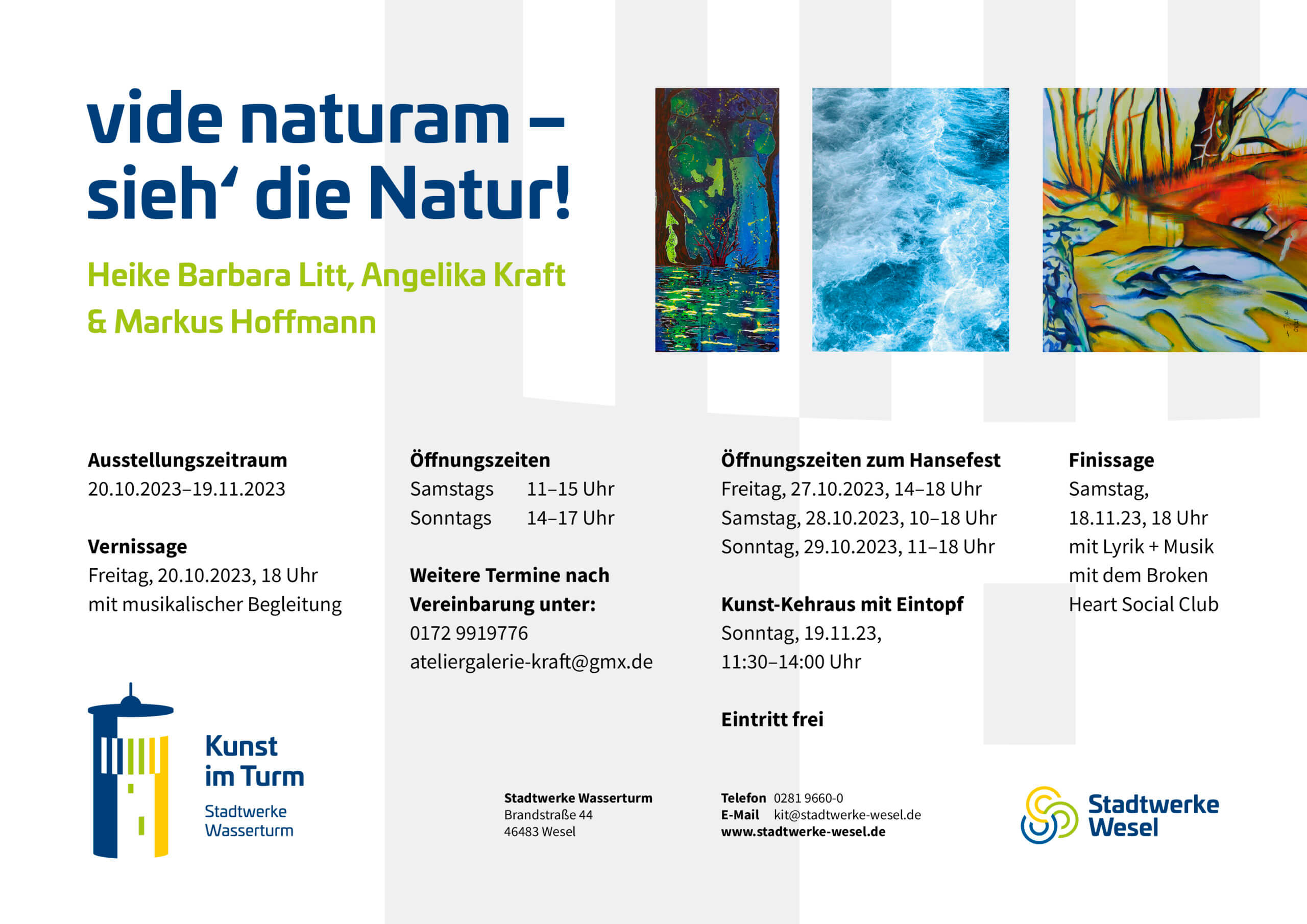 Die Öffnungszeiten der Ausstellung im Stadtwerke Wasserturm, Brandstraße 44, Wesel sind: