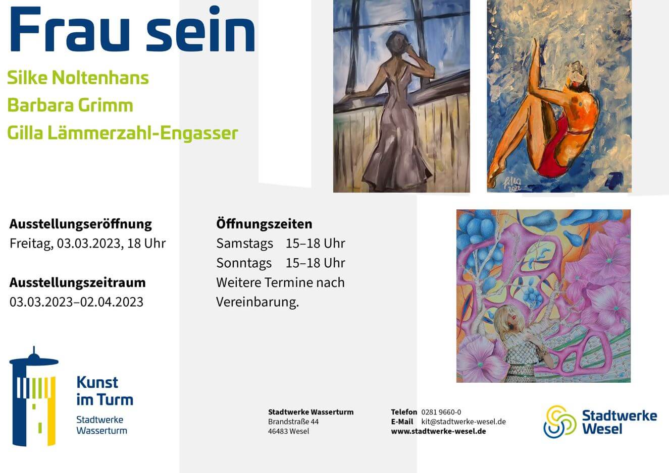 „Frau sein" lautet der Titel der Gemeinschaftsausstellung von Barbara Grimm, Gilla Lämmerzahl-Engasser, Silke Noltenhans, Barbara Ihme, Razan Khalil und Kerstin Römhild im Stadtwerke Wasserturm.