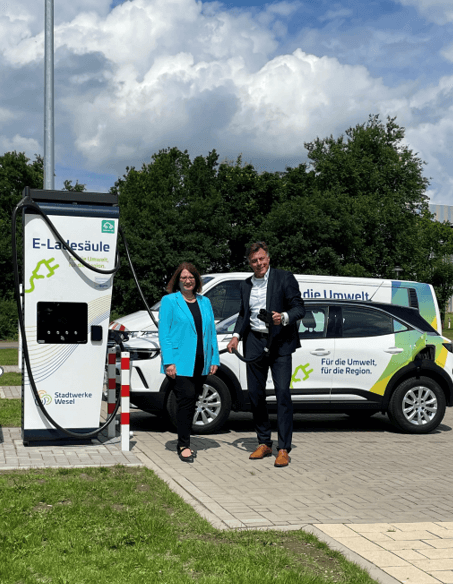 Mit den neuen Ladesäulen betreiben die Stadtwerke Wesel 36 Ladepunkte an 18 Standorten (Bismarckstraße, Fluthgrafstraße, Ev. Krankenhaus, Ganteswei-lerstraße, Esplanade, Rheinpromenade, Rheinwiesen, Parkdeck Bühnenhaus, Gindericher Dorfschule, Firma Lase/Laak, Marienhospital, Schepersweg und Weseler Straße in Büderich). Am neuen Standtort bieten zwei Ladesäulen die bekannte Ladung mit Wechselstrom 2x 22 kW an. Darüber hinaus ist dort die erste Schnellladestation der Stadtwerke Wesel installiert, welche 150 kW Gleichstromladung bereitstellen.