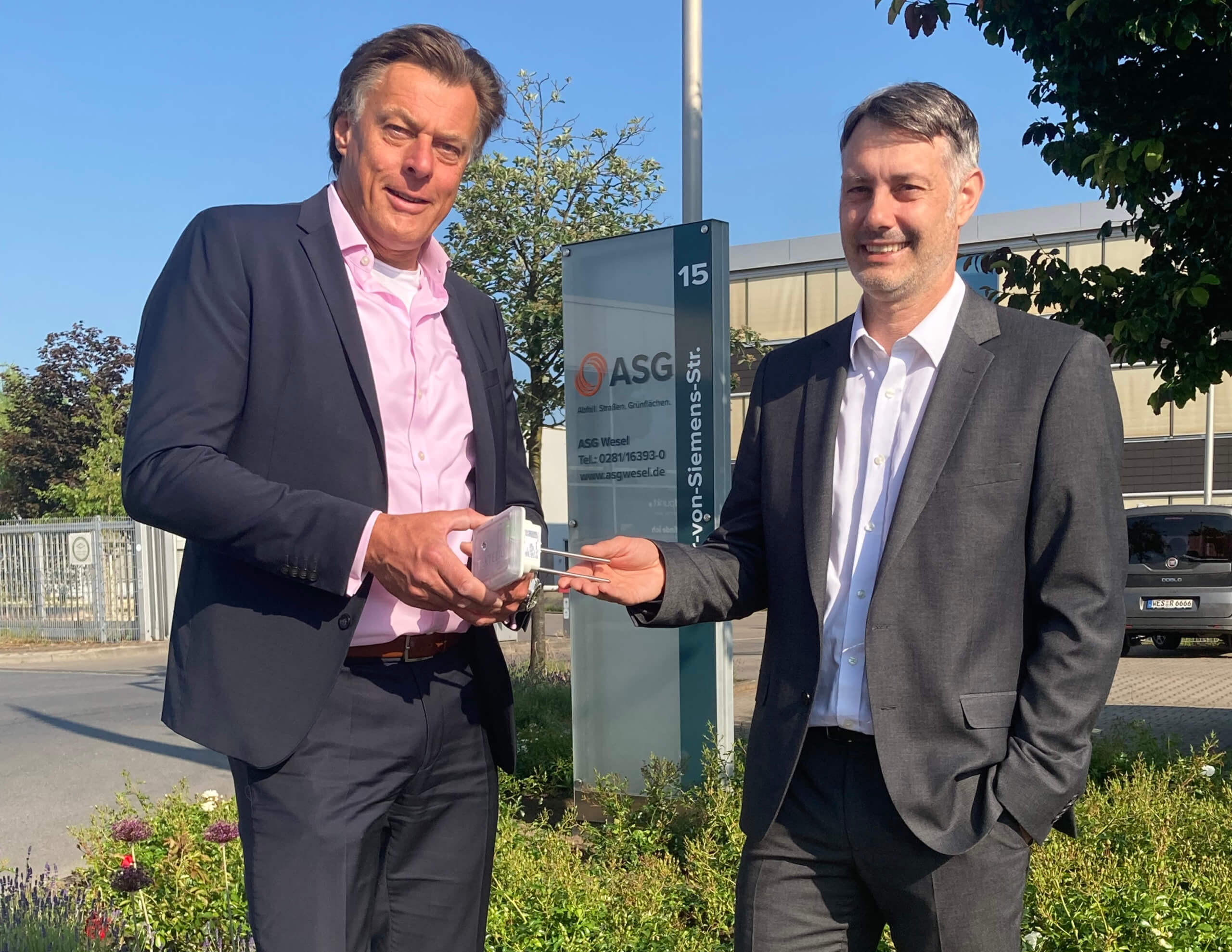 Die Stadtwerke Wesel haben ein Funknetz, ein sogenanntes LoRaWAN-Netz, für das Stadtgebiet aufgebaut, welches viele Anwendungsmöglichkeiten bietet. Die Vorteile hat auch der ASG erkannt und testet gleich zwei verschiedene Anwendungen. Zum einen die automatische Füllstandsmessung von den im Boden versteckten Müllcontainern in der Fußgängerzone und zum anderen die Messung von Bodenwerten, wie die Feuchtigkeit und Temperatur im Erdreich von Beeten.