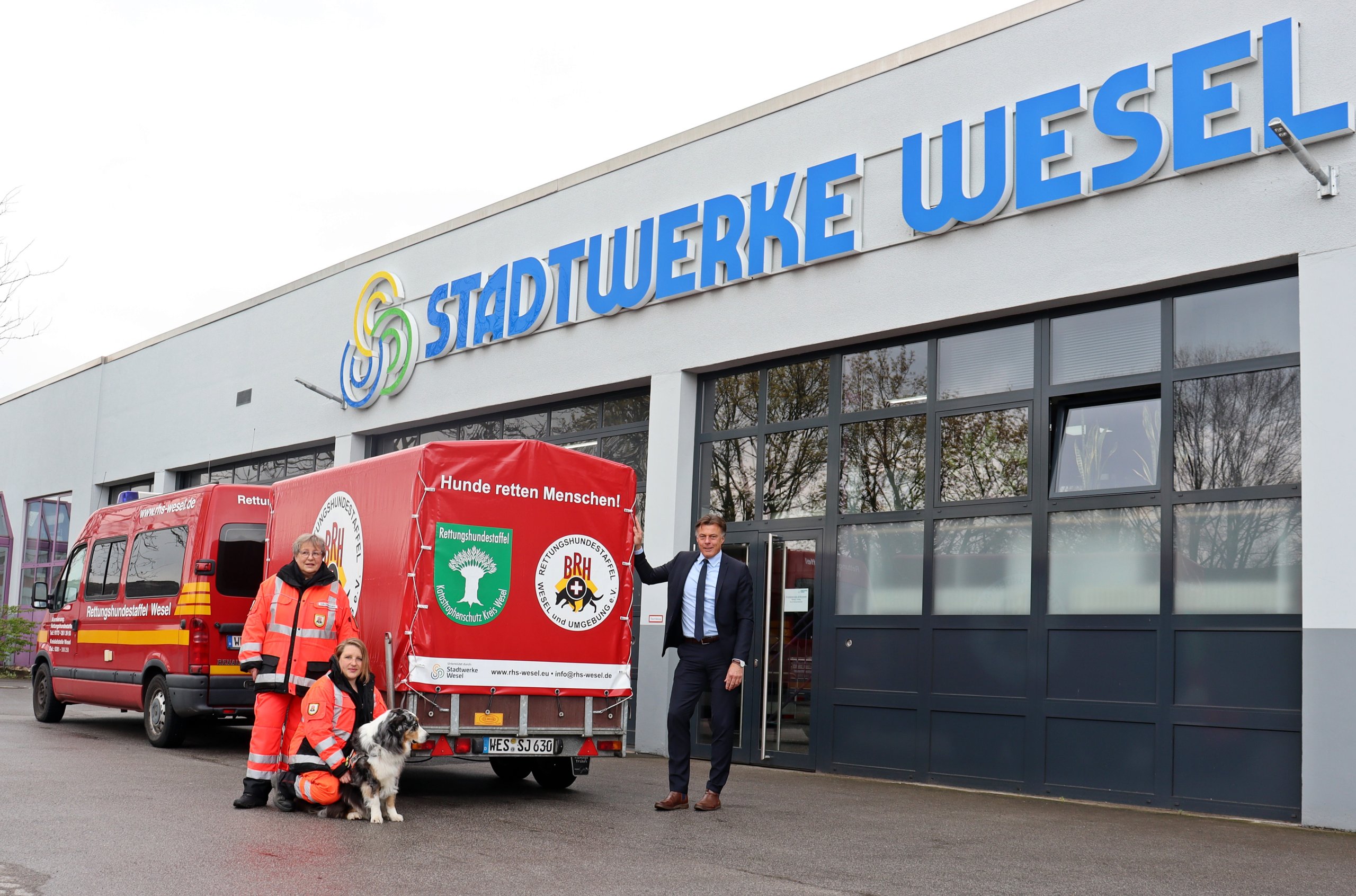 Die Stadtwerke Wesel stellen ihre Garage an der Hauptverwaltung Emmericher Straße für die Unterbringung der Fahrzeuge der Rettungshundestaffel Wesel und Umgebung e.V. zur Verfügung. Daher kam der Kontakt für ein Sponsoring zustande.