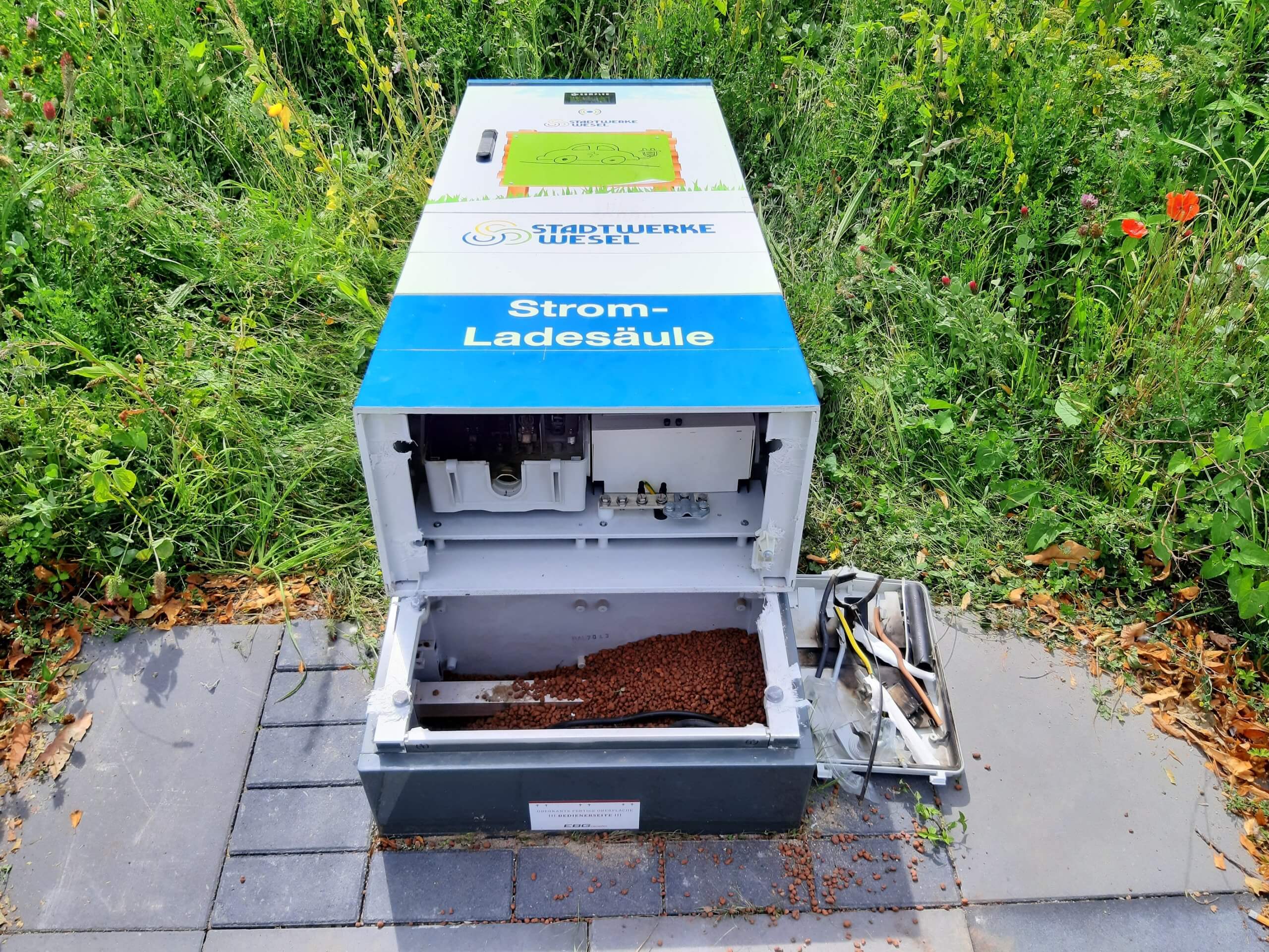 WESEL (16.08.2021) Gerade erst wurde an der Dorfschule Ginderich eine neue Elektroladesäule der Stadtwerke Wesel installiert. Am Wochenende, vermutlich am Samstag zwischen 22:00 Uhr – 23:00 Uhr, wurde diese durch gezielten Vandalismus vollständig zerstört. „Wir sind fassungslos über eine solche Zerstörungswut", so Rainer Hegmann, Geschäftsführer der Stadtwerke. Das bei dieser Tat sich die „Vandalen" auch noch selbst in Lebensgefahr gebracht haben, scheint diesen nicht bewusst gewesen zu sein. Die Ladesäule wird mit Starkstrom versorgt und bei Beschädigung der Kabel hätten lebensgefährliche Stromschläge ausgelöst werden können.